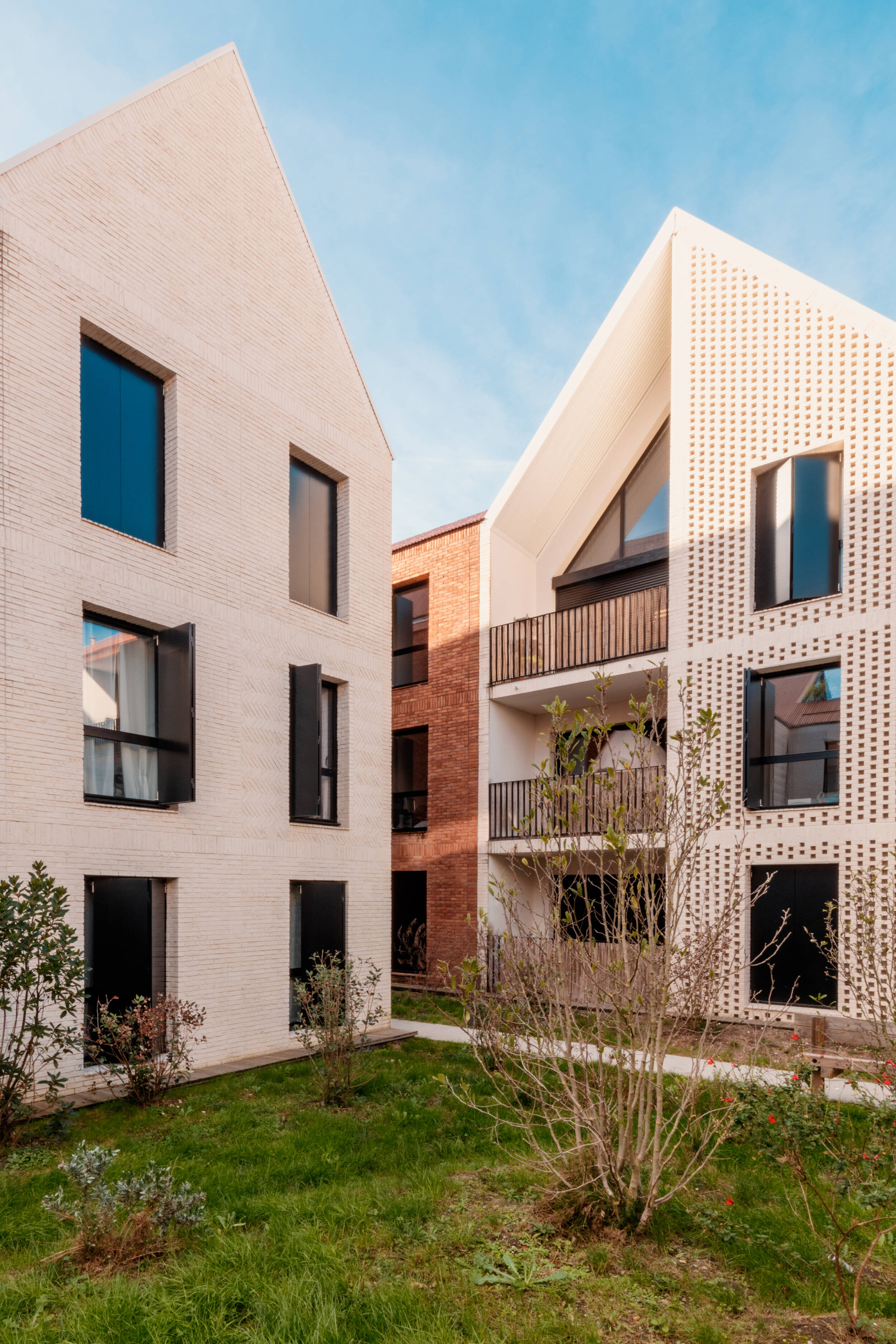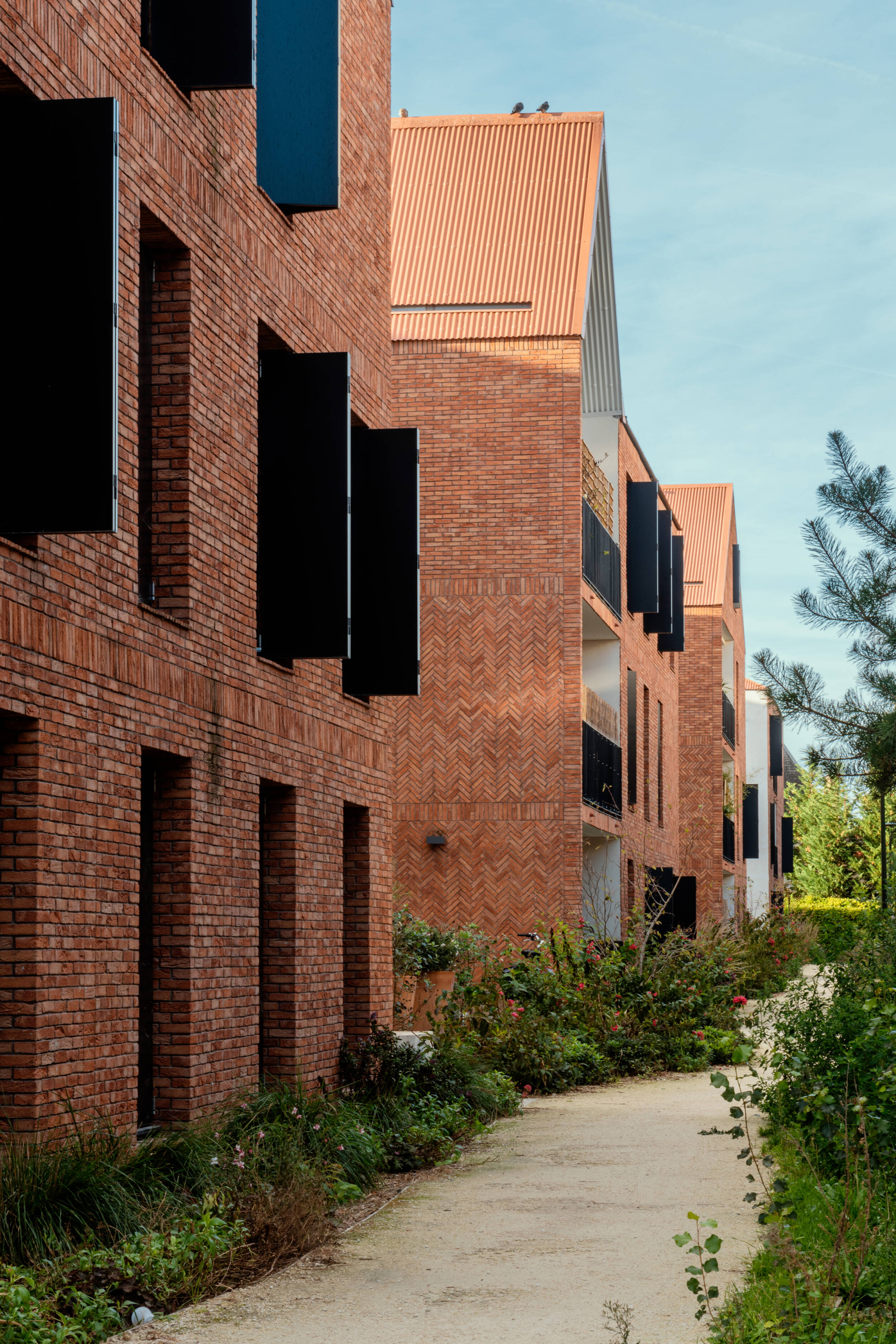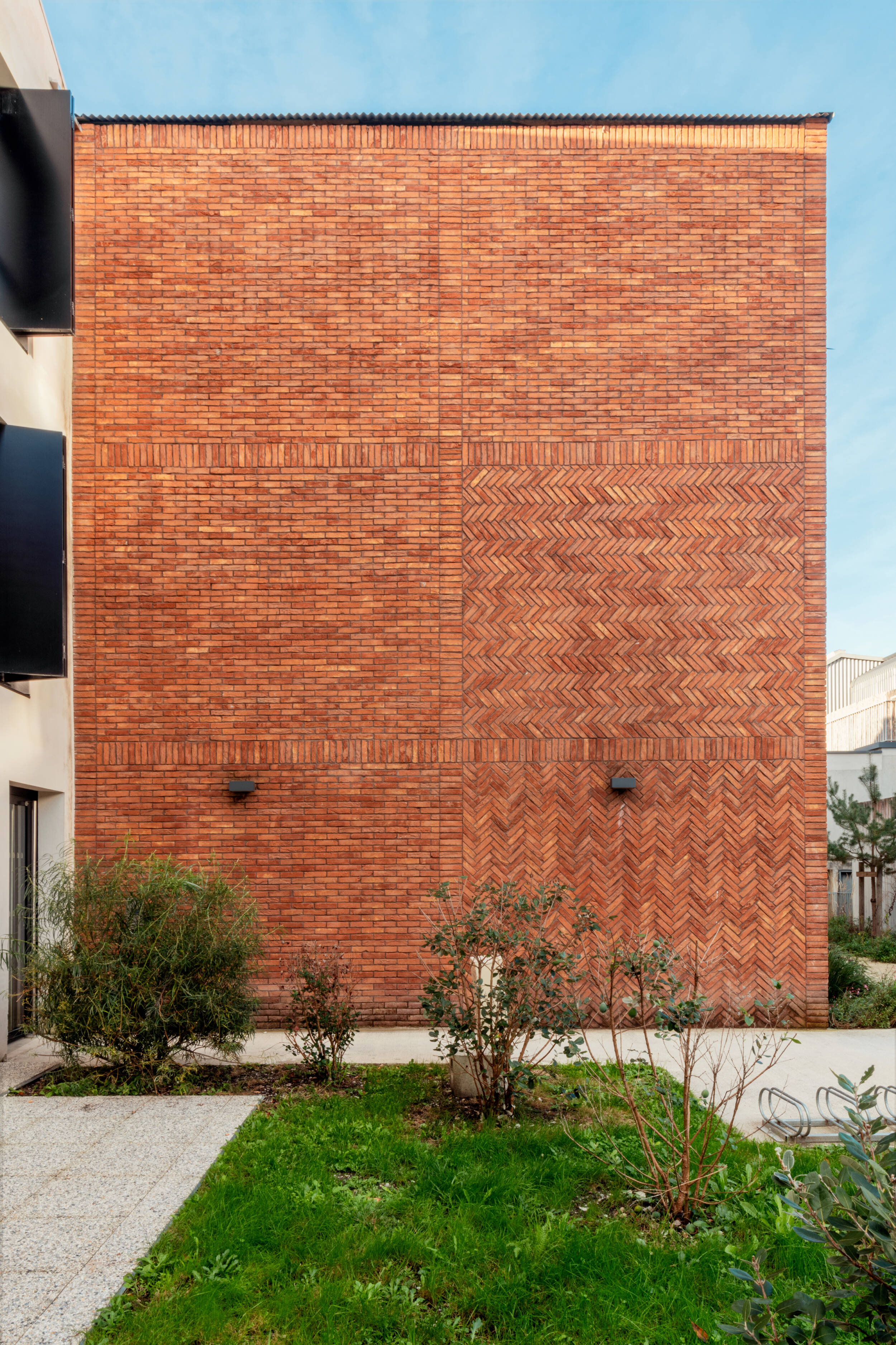 Choix des matériaux | Utilisation, sur 80 % des façades, de la brique de terre cuite moulée main (matériau naturel brut, ne demandant aucun entretien).
