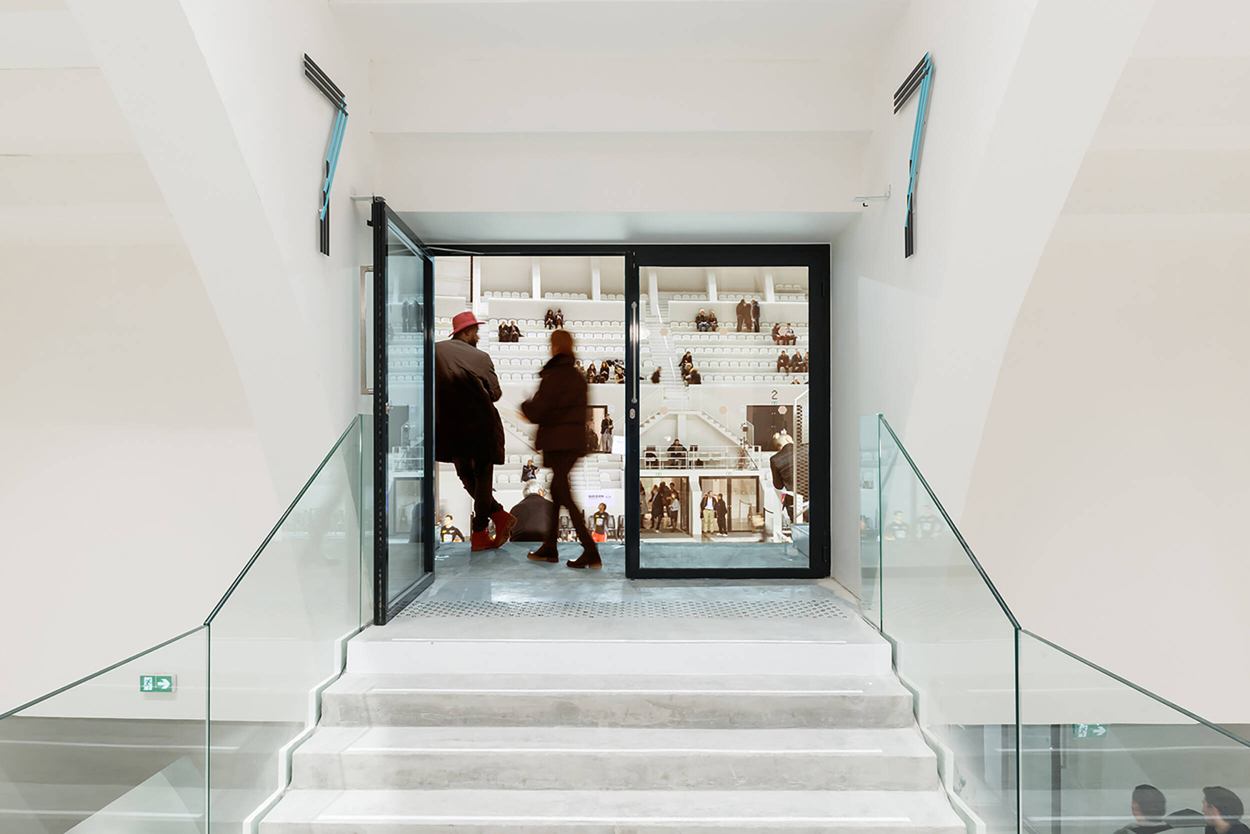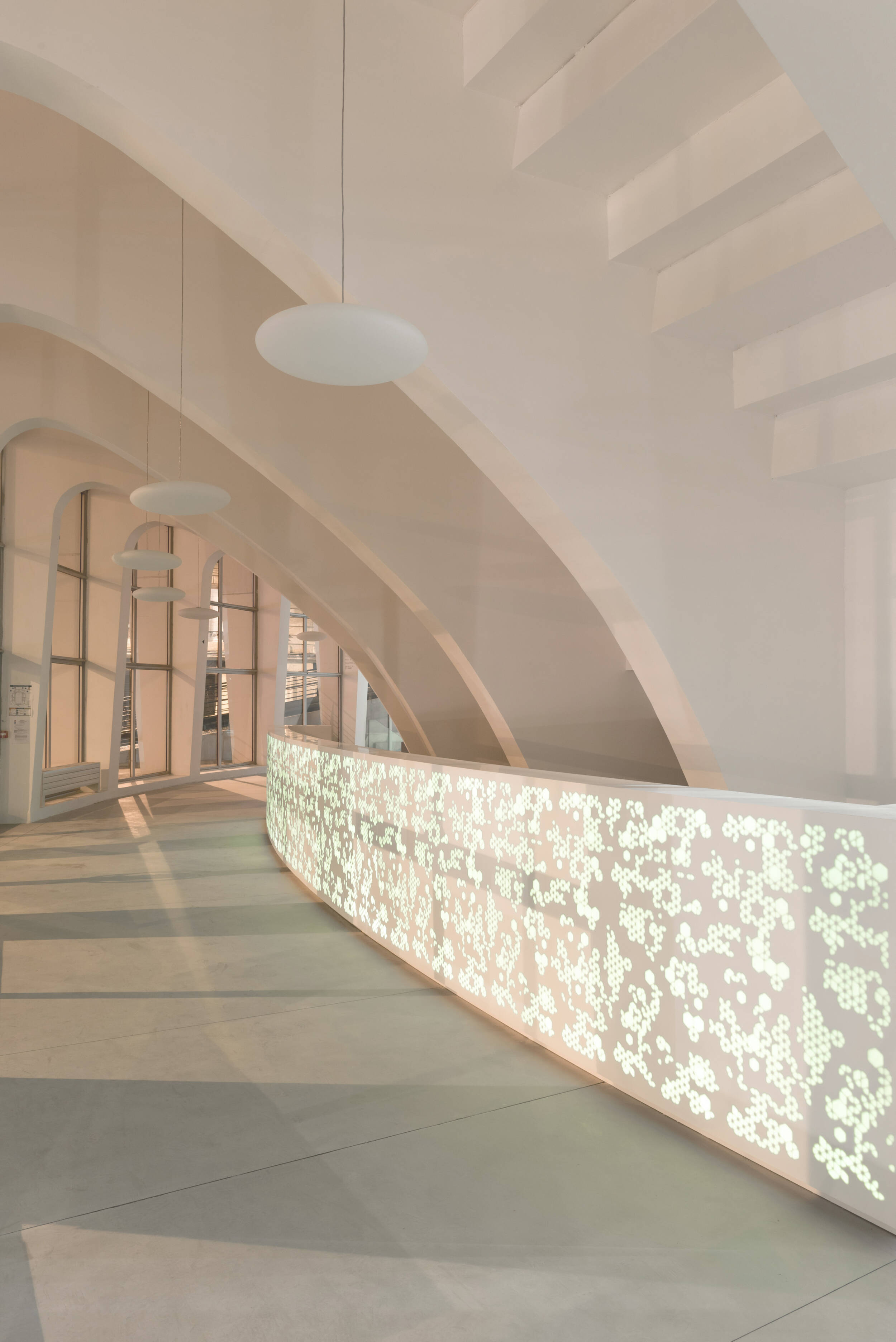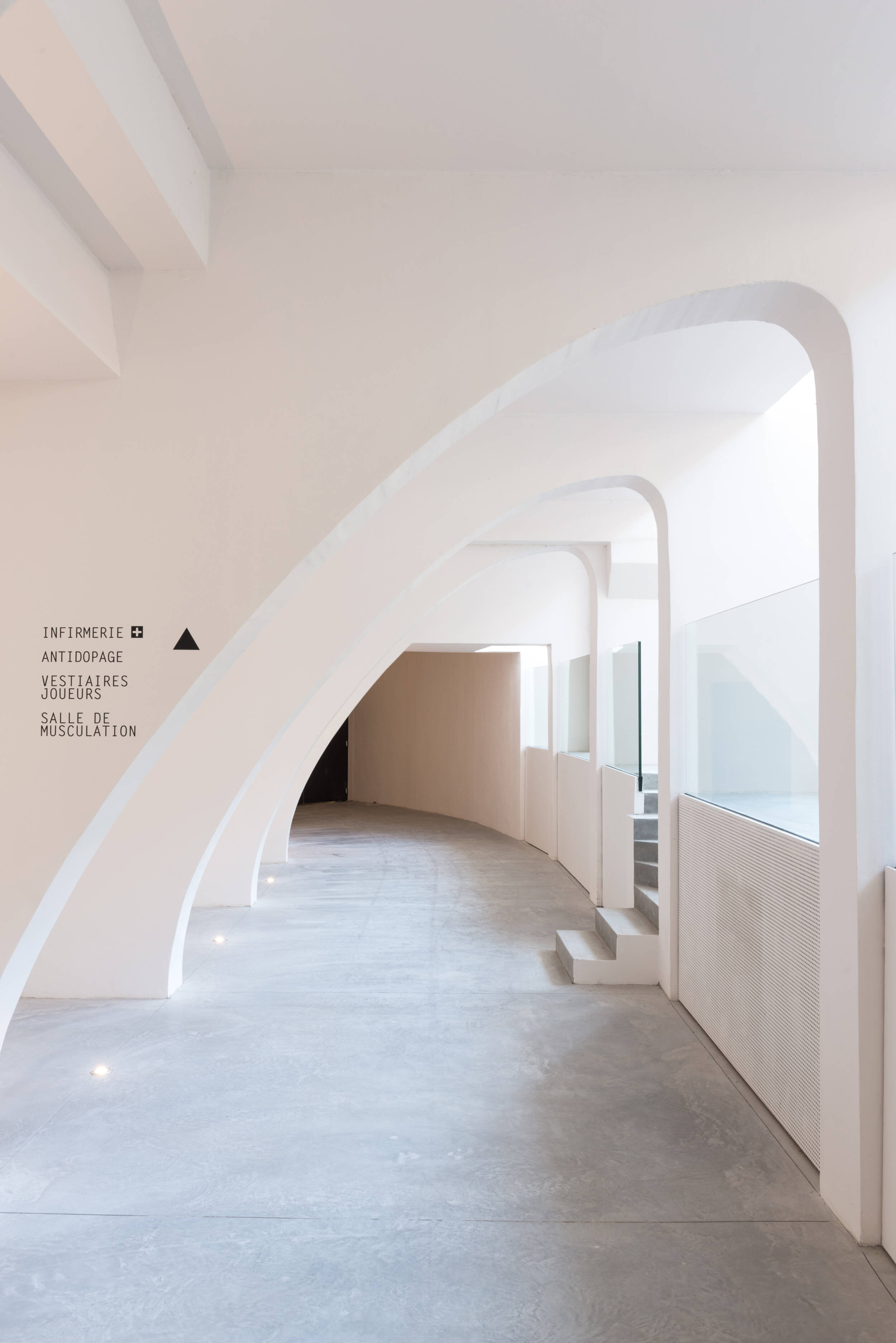 Confort visuel : Éclairage naturel privilégié, coordination optimale entre éclairage naturel et artificiel. Rétablissement et création d’ouvertures pour obtenir une lumière naturelle de 300 lux minimum assurant la pratique sportive journalière (pour le public scolaire) sans lumière artificielle. Restauration des puits de lumière, anneau de lumière naturelle en haut des gradins grâce à la suppression de panneaux de béton. Afin d’amener la lumière vers tous les espaces annexes, la coursive est conçue sur deux niveaux : haute au niveau de la place de la Ferme de Richemont, de plain-pied sur le parvis. Suppression des planchers latéraux pour éclairer naturellement les espaces de réception. Amélioration de la courbe de visibilité pour les spectateurs.