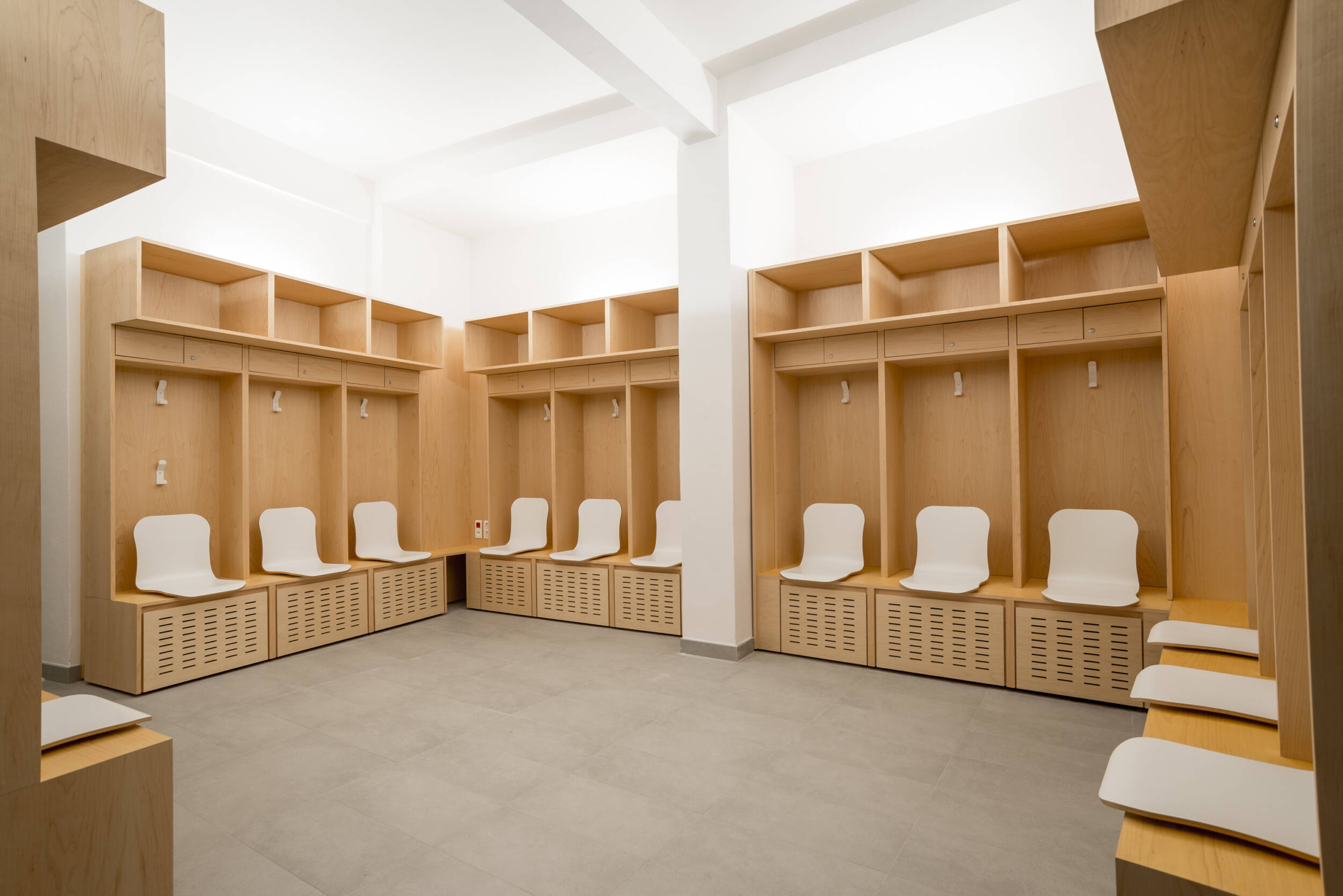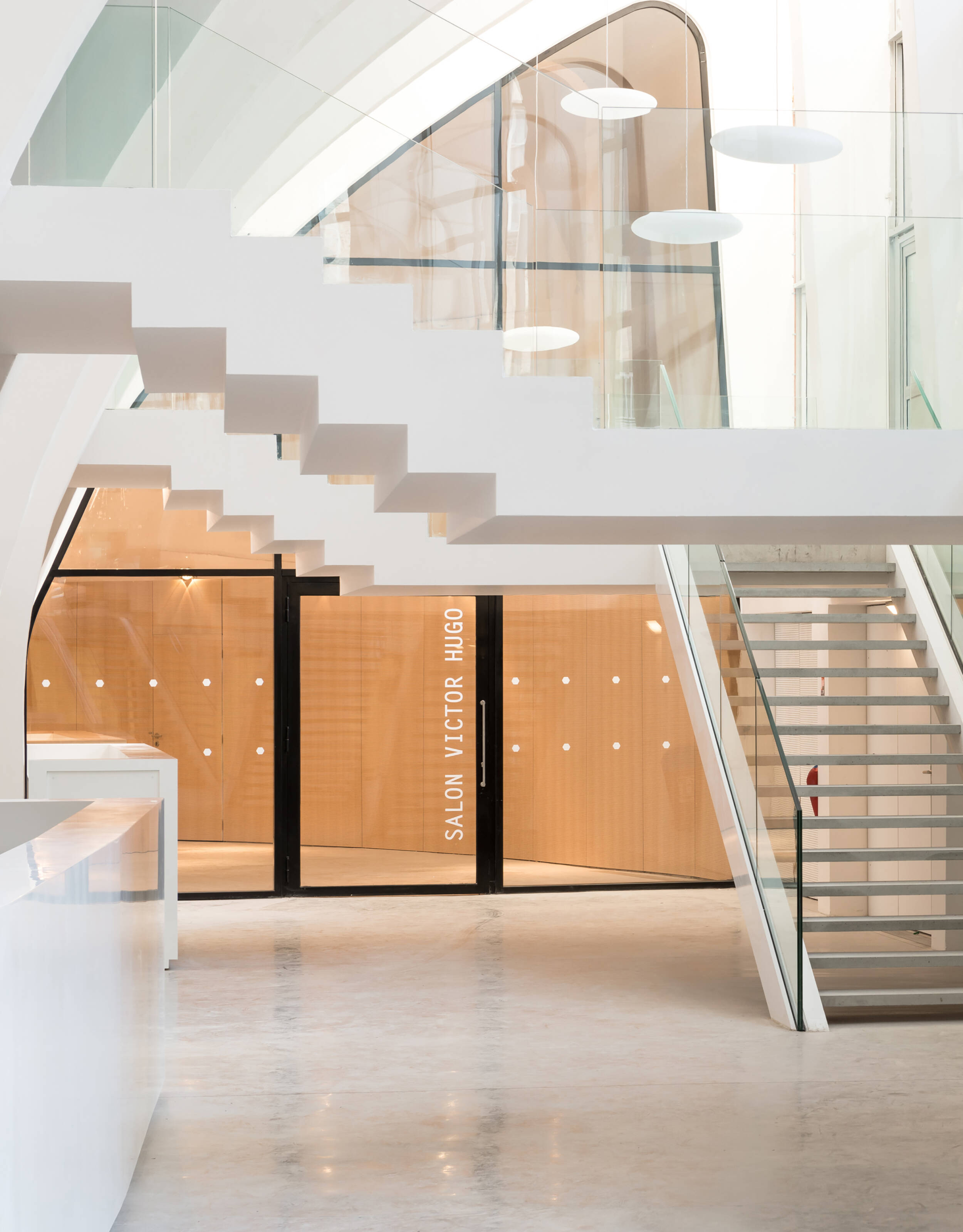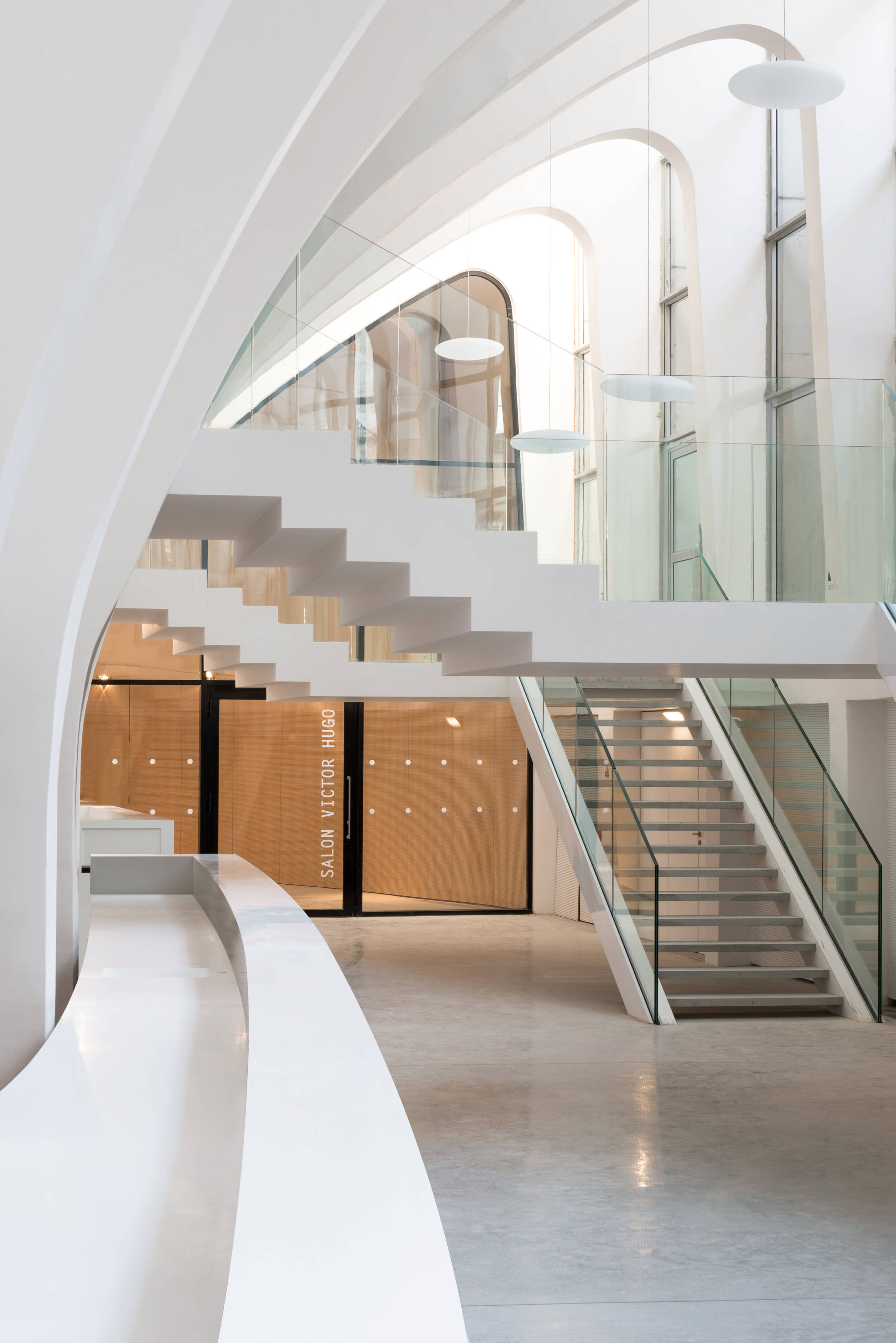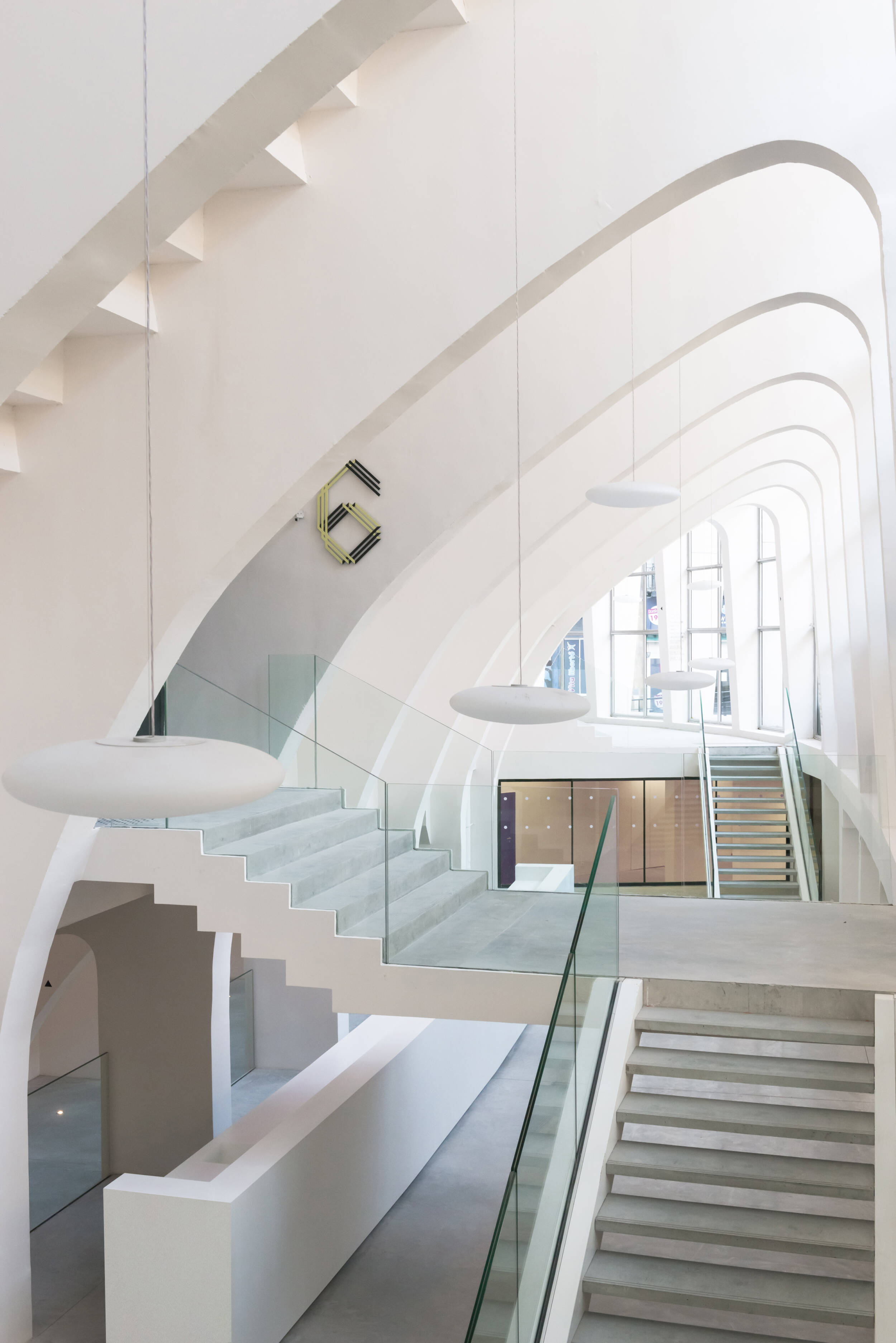 Confort visuel : Éclairage naturel privilégié, coordination optimale entre éclairage naturel et artificiel. Rétablissement et création d’ouvertures pour obtenir une lumière naturelle de 300 lux minimum assurant la pratique sportive journalière (pour le public scolaire) sans lumière artificielle. Restauration des puits de lumière, anneau de lumière naturelle en haut des gradins grâce à la suppression de panneaux de béton. Afin d’amener la lumière vers tous les espaces annexes, la coursive est conçue sur deux niveaux : haute au niveau de la place de la Ferme de Richemont, de plain-pied sur le parvis. Suppression des planchers latéraux pour éclairer naturellement les espaces de réception. Amélioration de la courbe de visibilité pour les spectateurs.