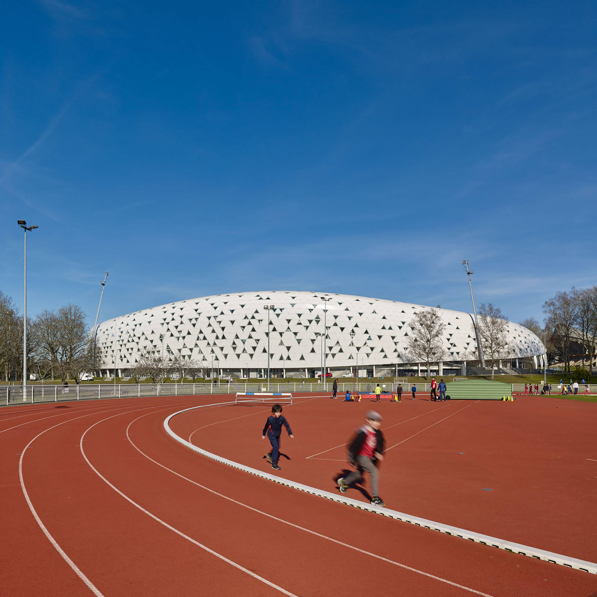 Le Stade Beaublanc est situé au cœur du Parc des sports de Beaublanc qui présente une qualité exceptionnelle par son organisation paysagée, l’intégration des divers éléments construits et naturels : Palais des Sports, terrains de grands jeux, piscine, allée pédestre, parcours de jogging, alignements de sujets remarquables d’essences variées. Son organisation fonctionnelle, en accès libre la journée, lui confère une spécificité de « parc public » peu courante, de cohabitation du sport de haut niveau ou de loisirs, de pratiques organisées ou spontanées. Cette organisation paysagère et fonctionnelle est maintenue dans notre projet de reconstruction du stade intégré au Parc Sportif.