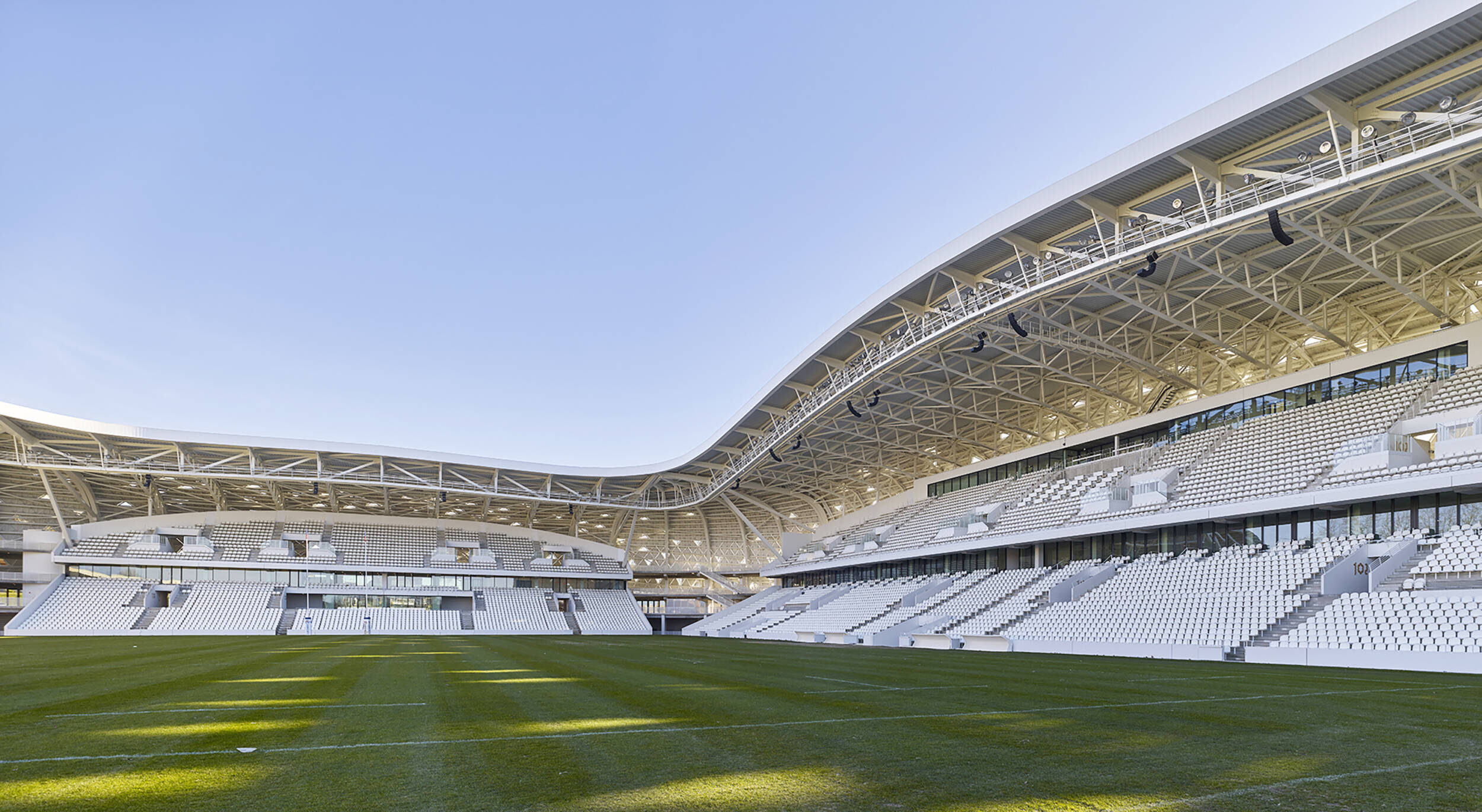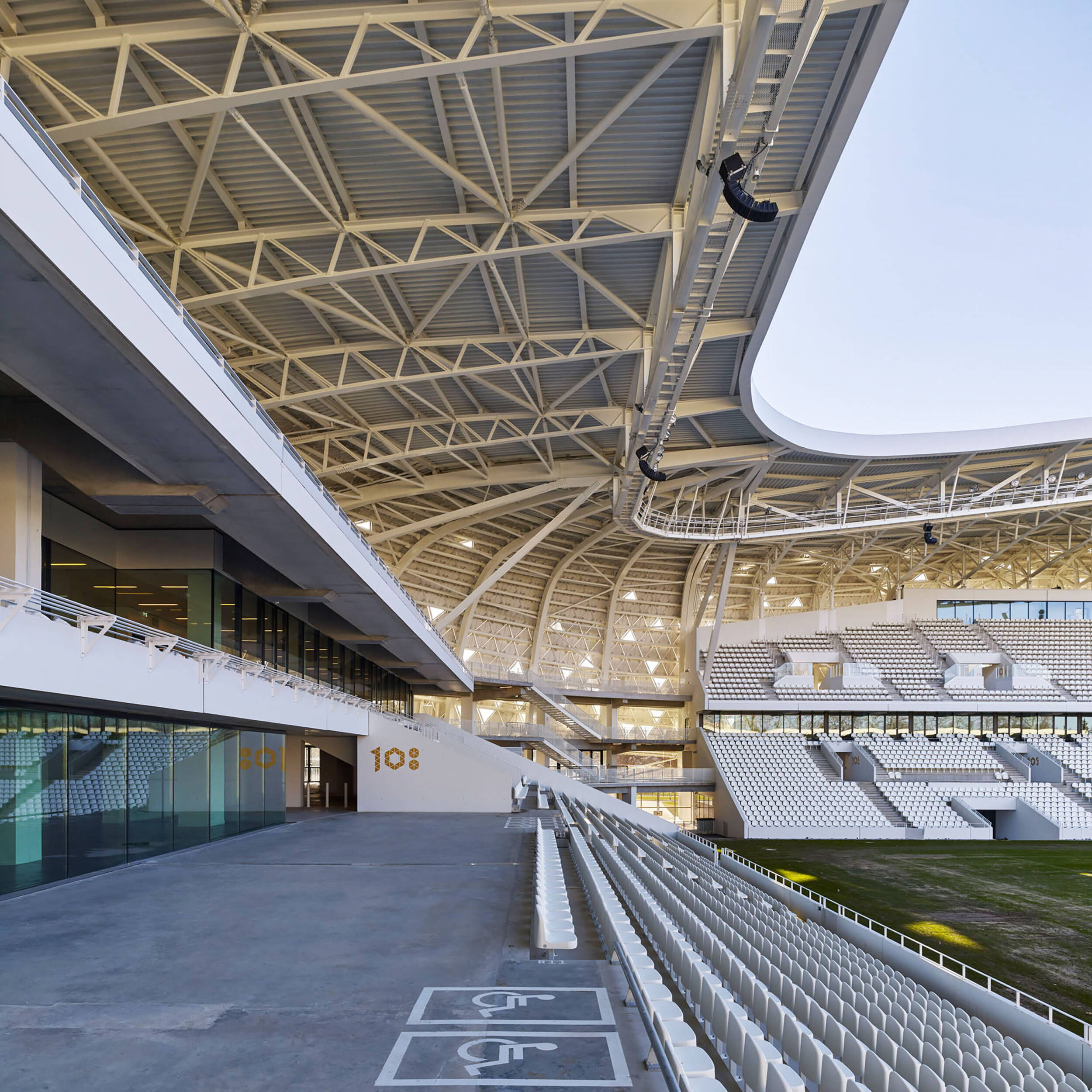 Application du cahier des charges GEEM, pour permettre au stade d’être polyvalent et d’accueillir une configuration spectacle de 25000 personnes dont 9000 sur la pelouse.