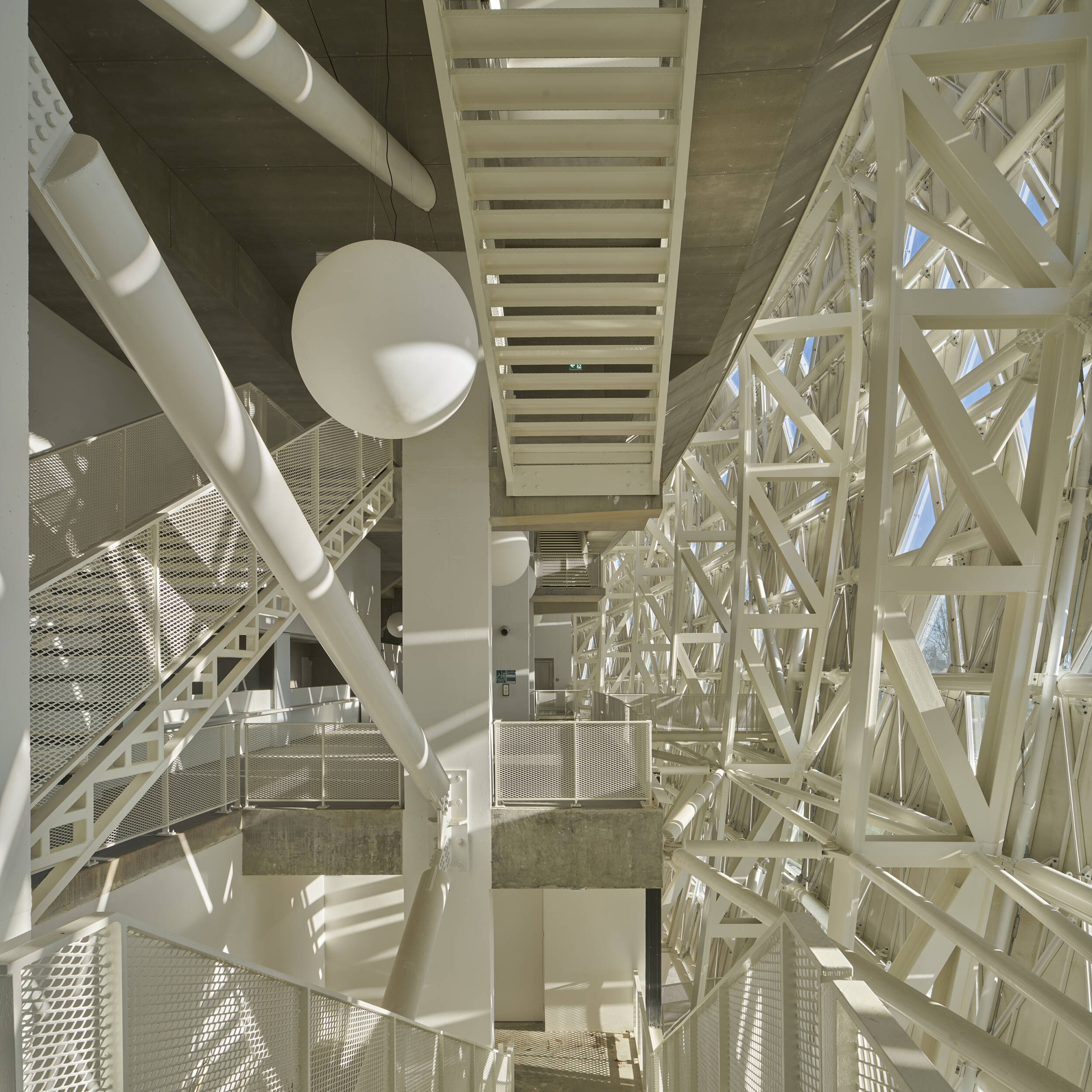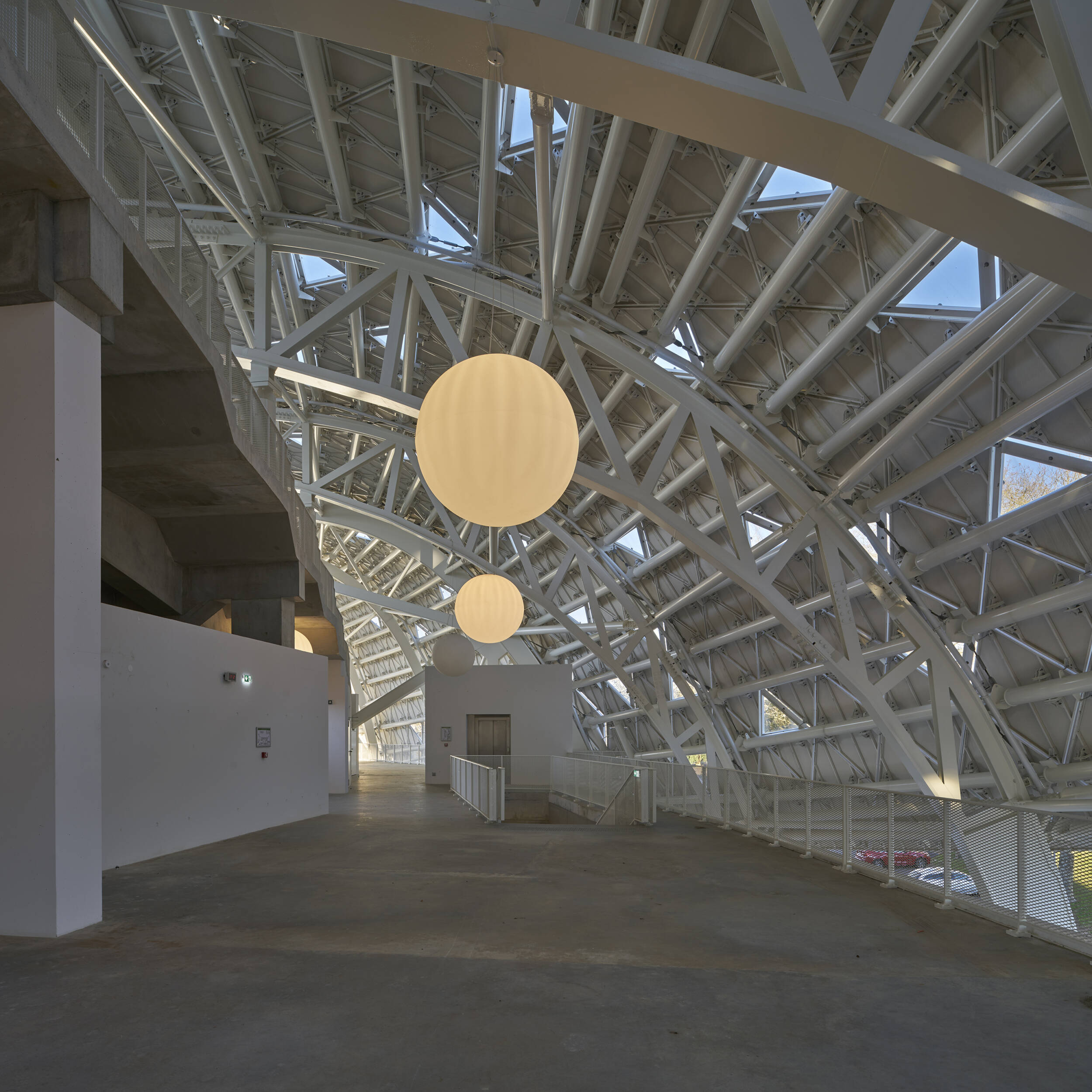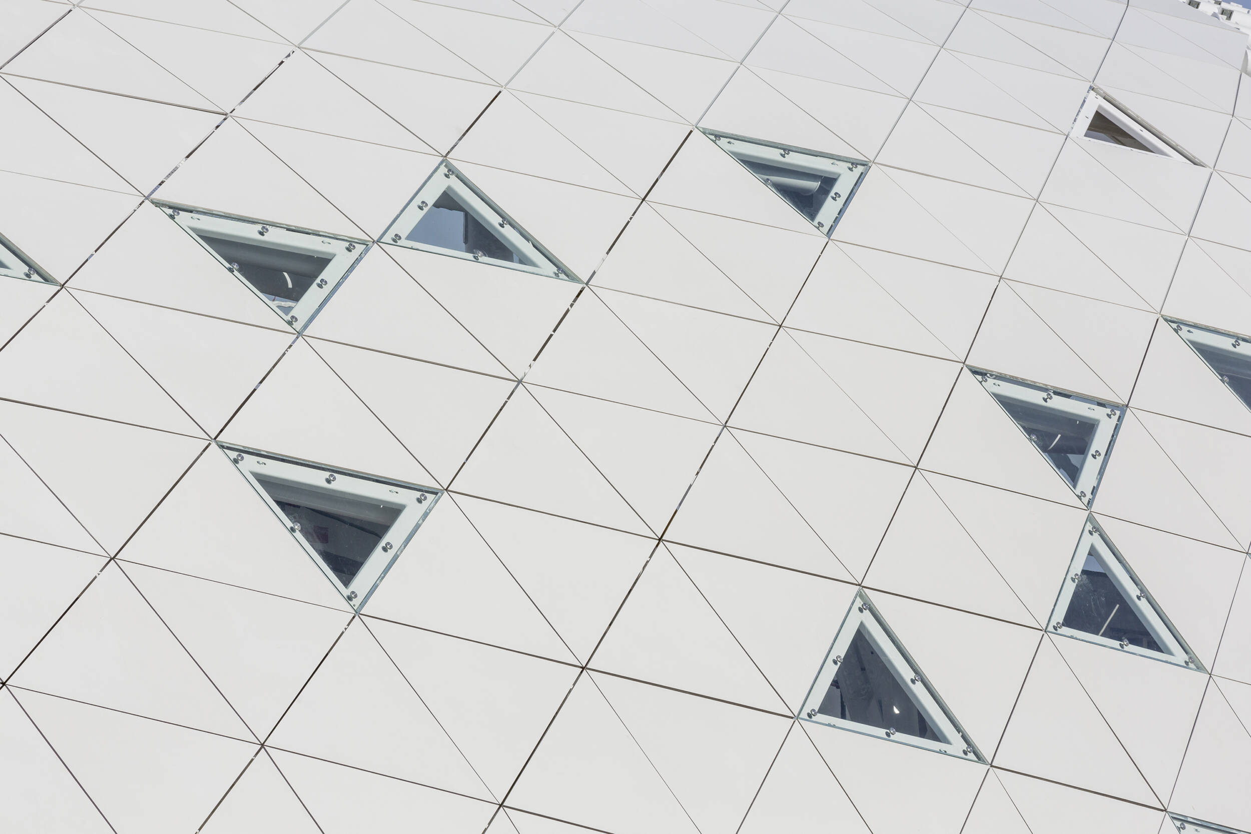 L’absence d’angles saillants permet « d’estomper » les limites du volumes au même titre que l’utilisation d’un matériau réfléchissant.