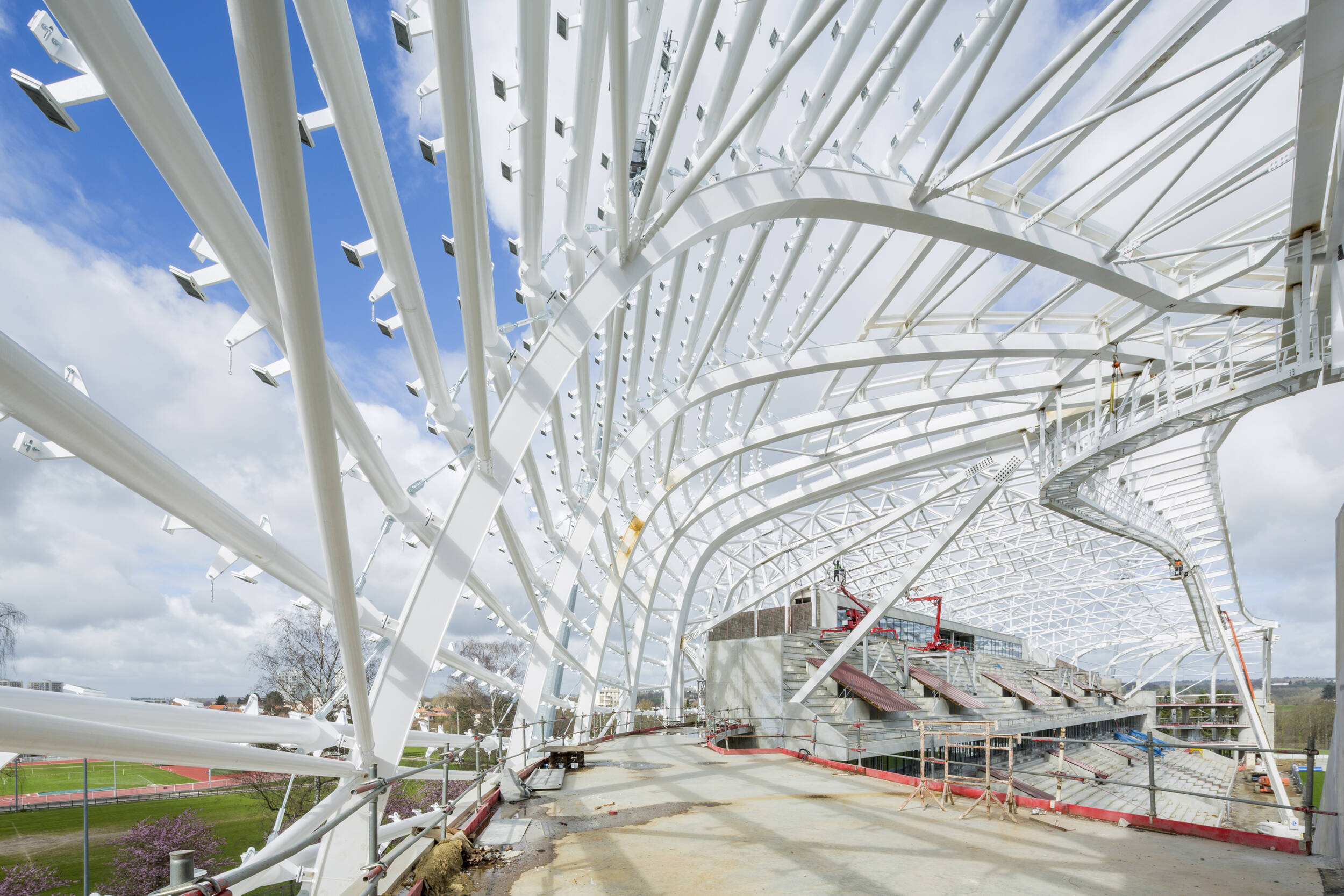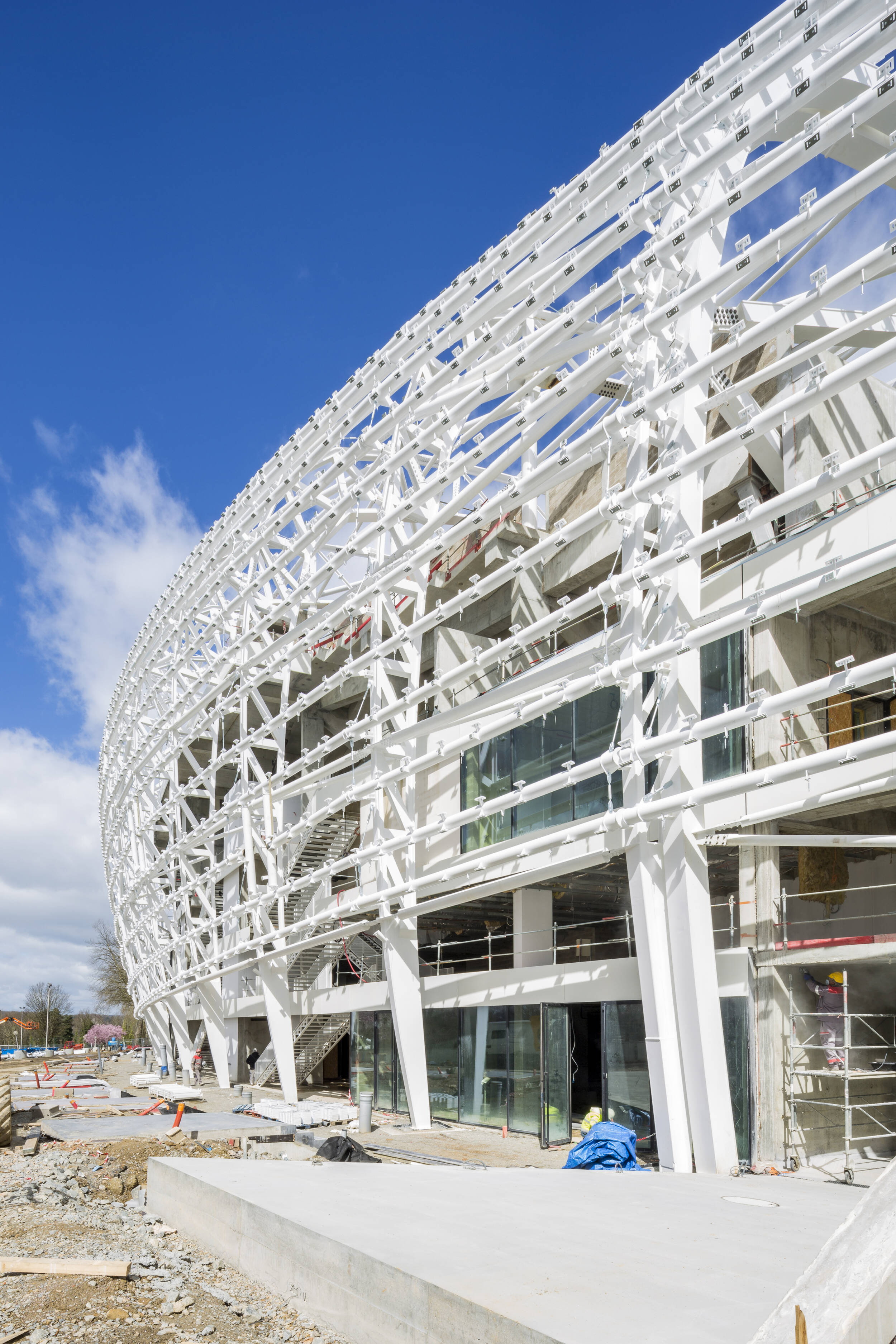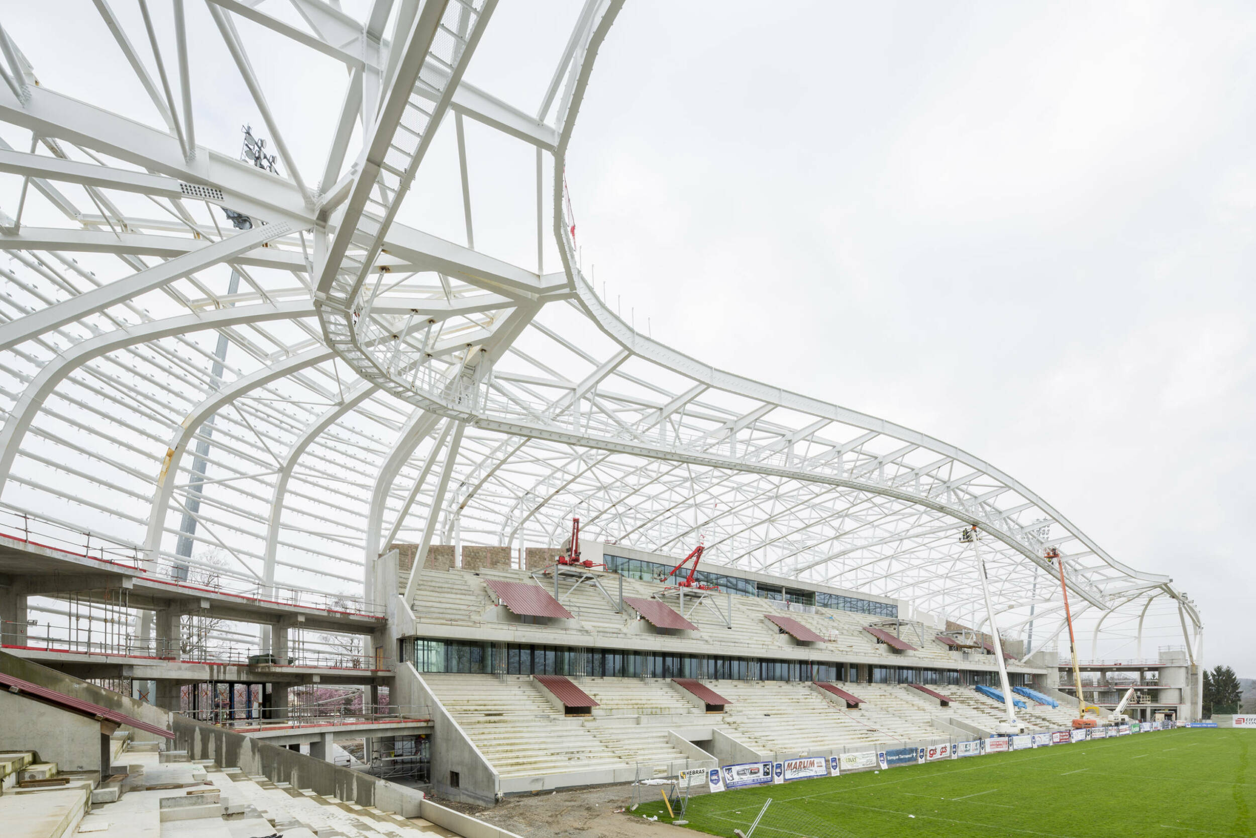 Démolition / Reconstruction du stade Beaublanc tribune par tribune pour créer une nouvelle arène de 20 000 places et une coque continue autour de la pelouse conservée. Capacité finale 20 900 places foot / rugby, 25 000 places spectacles.